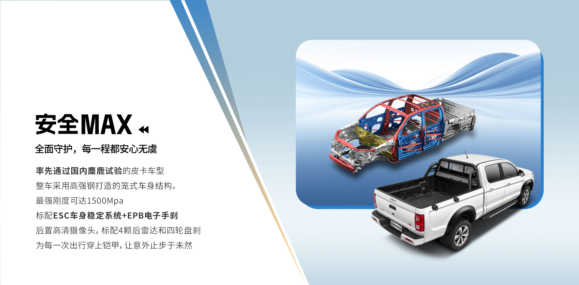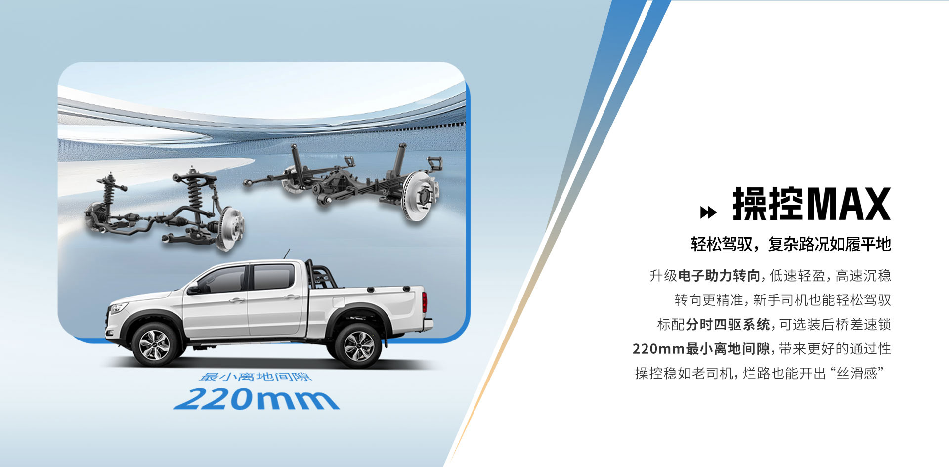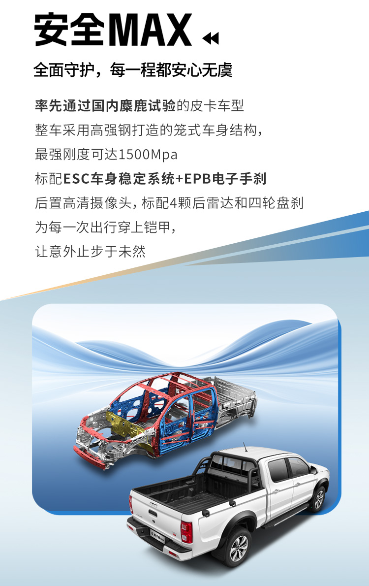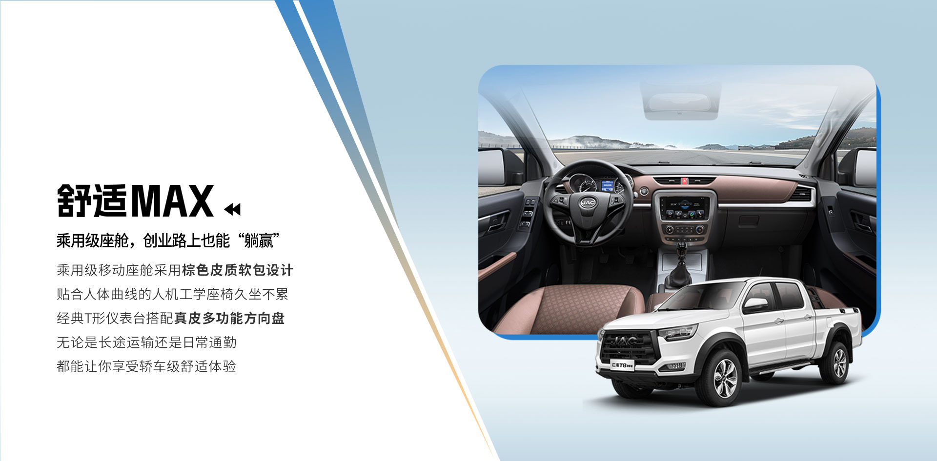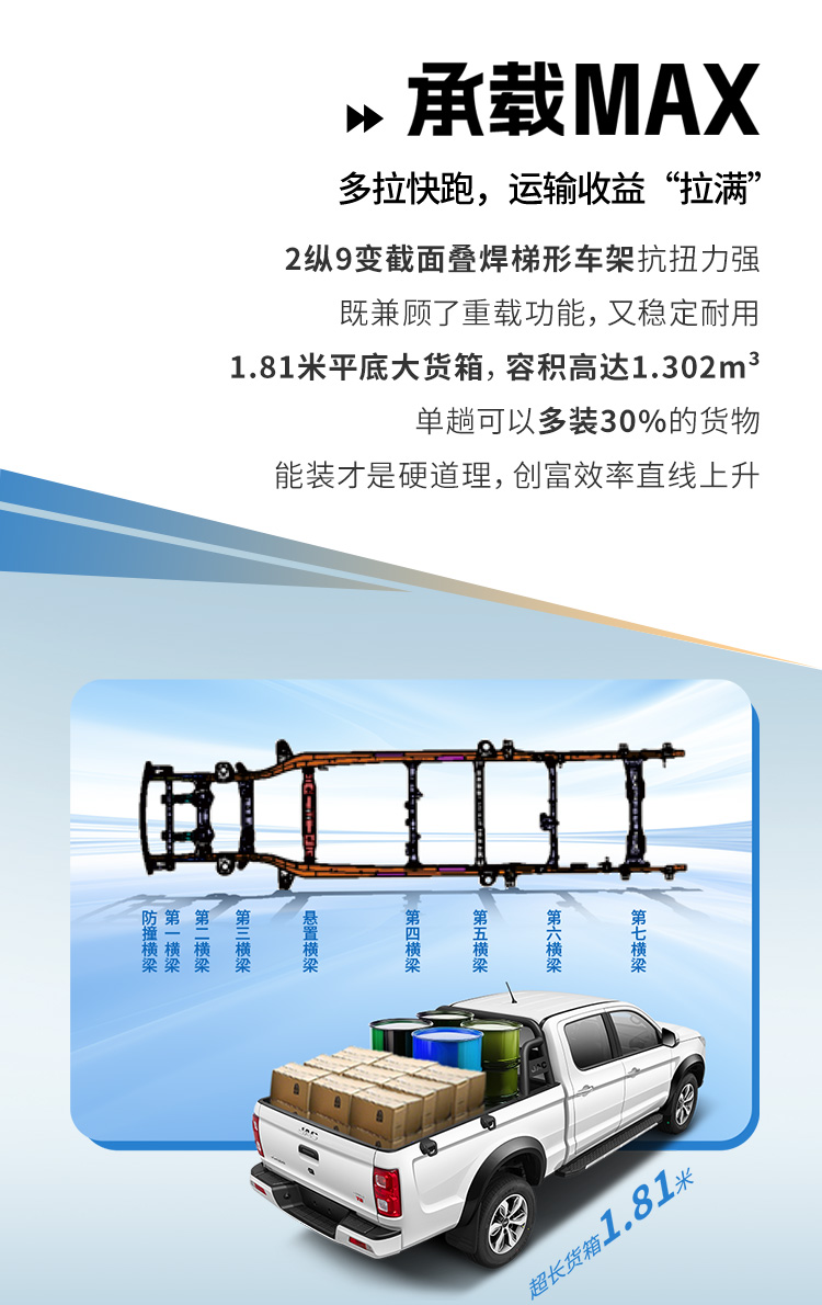 | 备注 | 1、"●"代表标配,"—"代表无此配置,"○"代表选装; 2、可选颜色:极境黑、珠峰白、焰日红、泸沽蓝、流光银、山岩灰、大漠黄; 3、选装平货箱加价2000元;选装后桥机械式差速锁加价3000元;选装“铁质越野版侧踏+铁质越野版后杠"加价1000元;选装越野轮胎; 4、JAC江淮皮卡营销公司保留对以上配置价格修改的权利。 | ||||